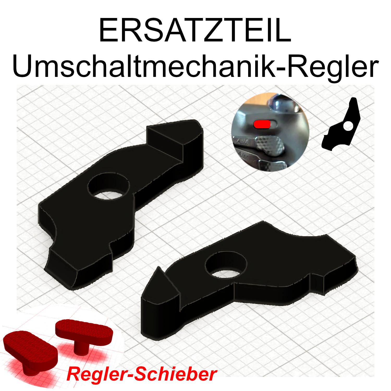 Das Set wurde passgenau nachkonstruiert. Die leicht aufgeraute Oberfläche bietet zusätzlichen Halt und erleichtert ein schnelles Umschalten zwischen den gewünschten Funktionen. Nach dem Einbau müssen die beiden Teile lediglich fest miteinander verbunden werden, z. B. durch Verschweißen mit einem Lötkolben. Ein späterer Austausch ist anschließend nicht mehr vorgesehen.